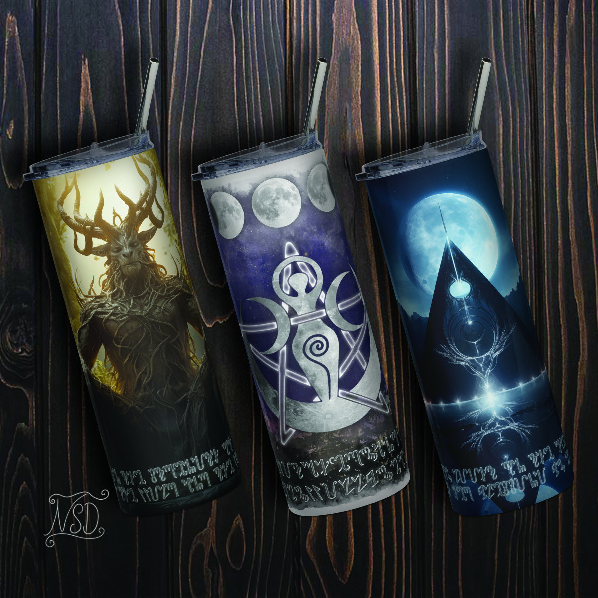 Claim Your Magickal Ally: Ideal for the modern mystic, these tumblers are a daily reminder of the power and beauty of Pagan lore. Select the one that resonates with you, or collect the entire set to surround yourself with the energies of these ancient deities and symbols.