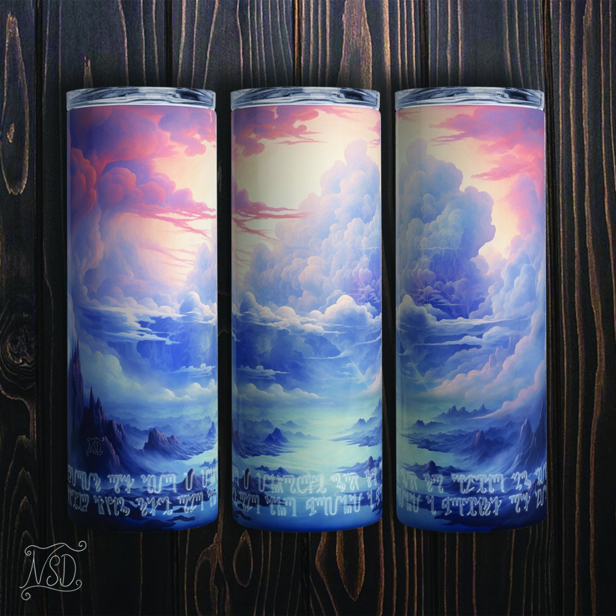 Air's Clarity: Breathe deeply with the Spirit of Air. The expansive sky on our Air tumbler invites a cleansing breath, sweeping away the old and welcoming new life. The inscription uplifts: "Spirit of air, I invoke you to clear my mind, sweep away the old and bring a breath of life."